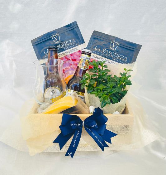 Cerveza conversada- Guacal de madera con cervezas artesanales y planta verde