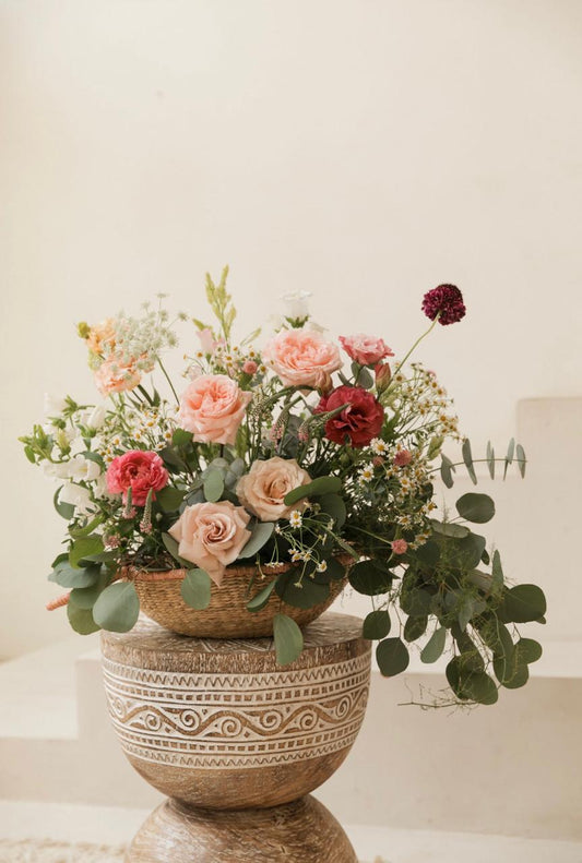 Arreglo flores batea rústica