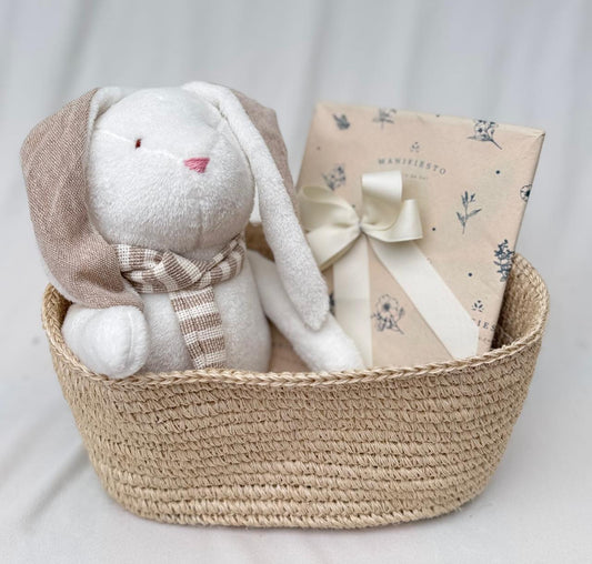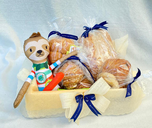 Bienvenido Bebé 2- Canasta de Panes Artesanales para Padres y Muñeco dpara Bebé
