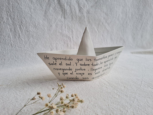 Barquito en Acero Pintado – Regalo con Mensaje Inspirador: "He aprendido que no puedo controlar el viento, pero sí, hacerlo trabajar a mi favor..." 🚤🌊