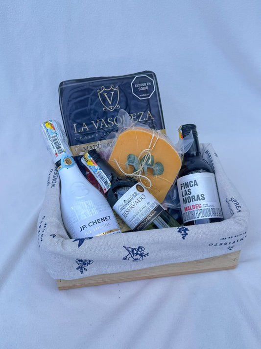 Cajas de Anchetas 1 | con vino, chocolate, brownies y jamón