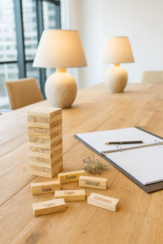 Construimos Juntos |Mini jenga de madera con palabras de equipo