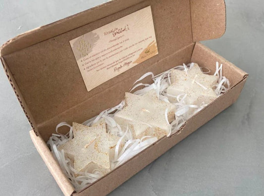 Estrellitas en arcilla con palabras soñar, amar, magia y creer