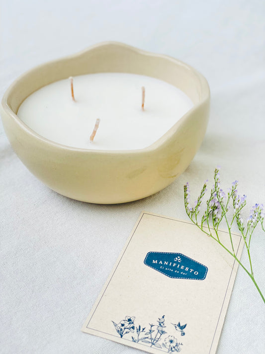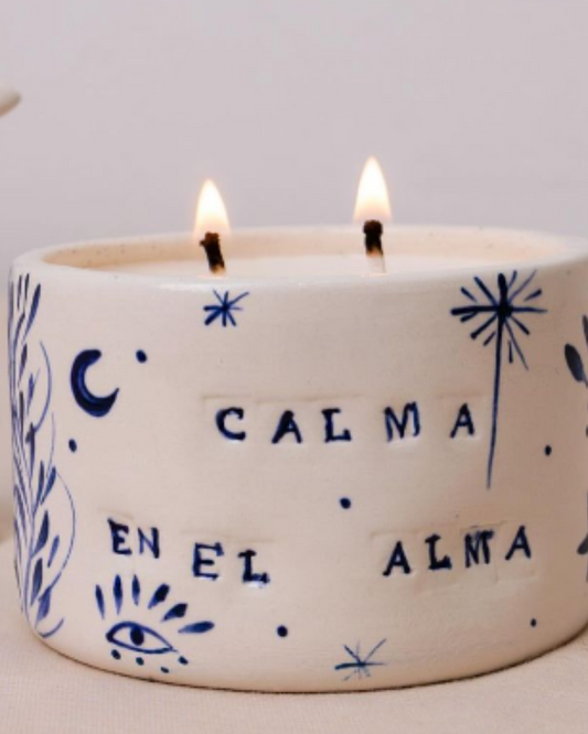 Vela artesanal en Cerámica Hecha a Mano – "Calma en el Alma"