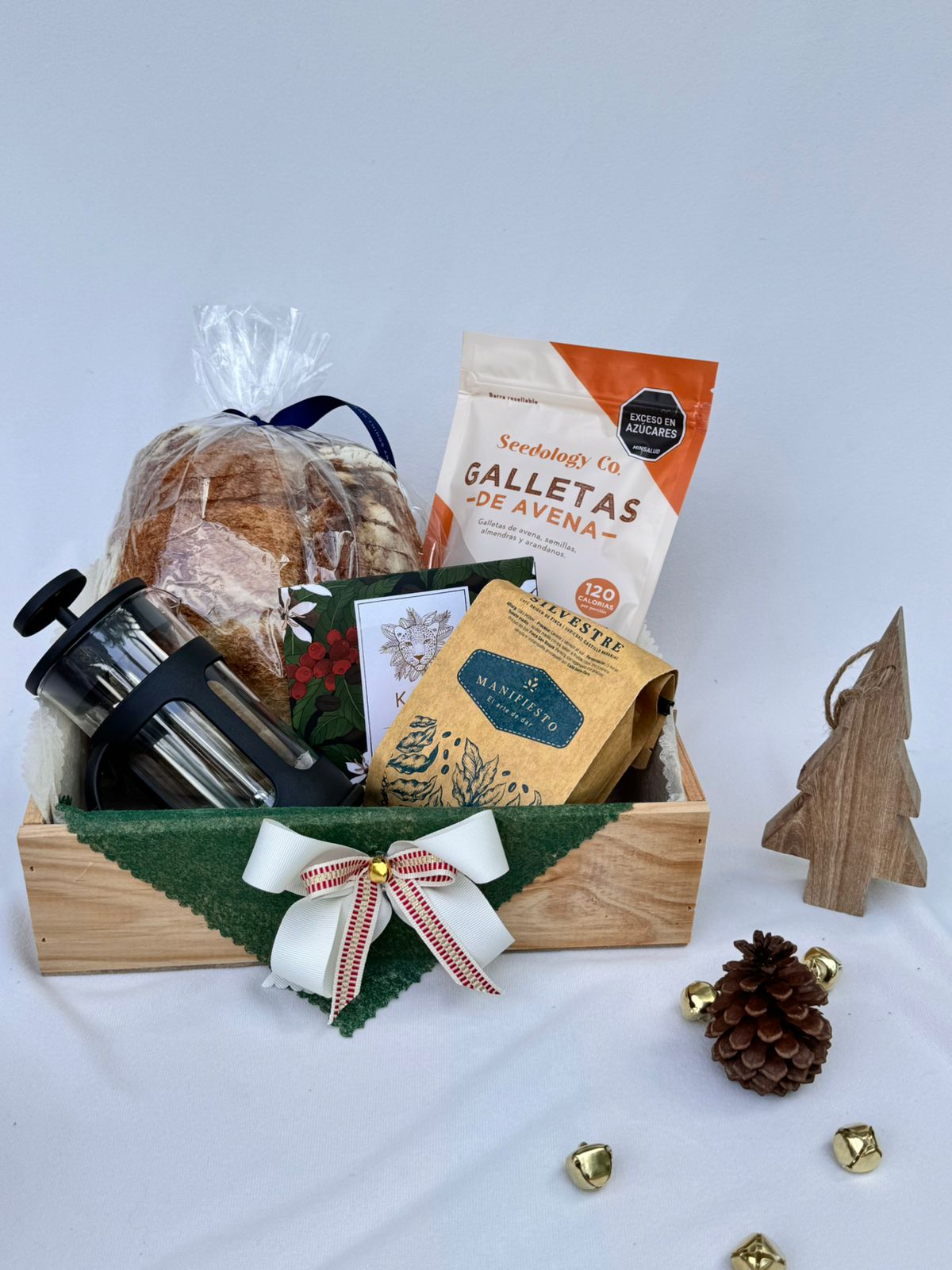 Guacal con galletas de avena SEEDOLOGY, café artesanal, chocolate, pan de massa madre y prensa francesa