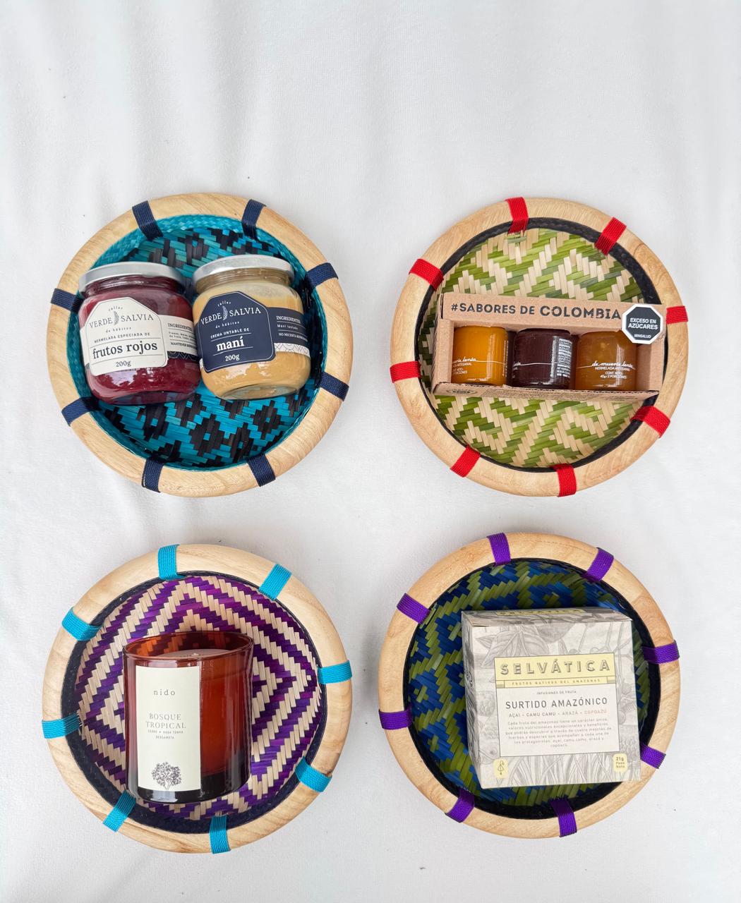 Estas artesanías en paja de tetera reflejan la tradición y el saber ancestral de la cultura eperara Sia pidara del Cauca, Costa Pacífica. Cada pieza, tejida con técnicas transmitidas de generación en generación, lleva consigo la esencia de la tierra y la historia cultural indígena. Sus diseños simbolizan la conexión con la naturaleza, los ciclos de la vida y la espiritualidad. Acompañadas de un tarrito de brownies, 2 conservas saludables, río de conservas de frutas colombianas, o una vela de vidrio sostenible. Este es un regalo colombiano que exalta lo mejor de nuestra identidad y tradición.