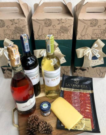 Experiencia con tres botellas de vino (blanco Montes, tinto Montes y espumoso Lambrusco Rosé), acompañadas de una cuña de queso y unos madurados. Perfecto para compartir momentos especiales alrededor de los sabores del buen vino.