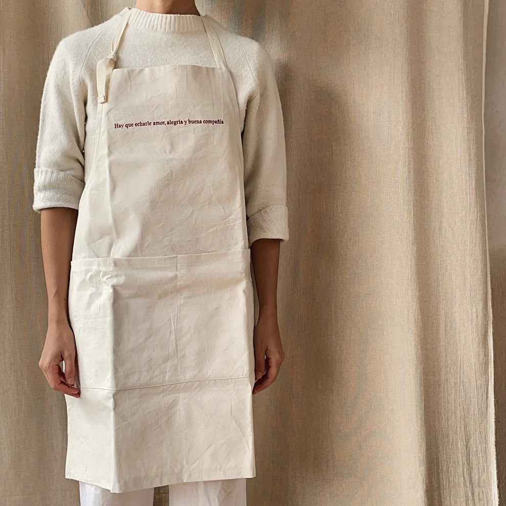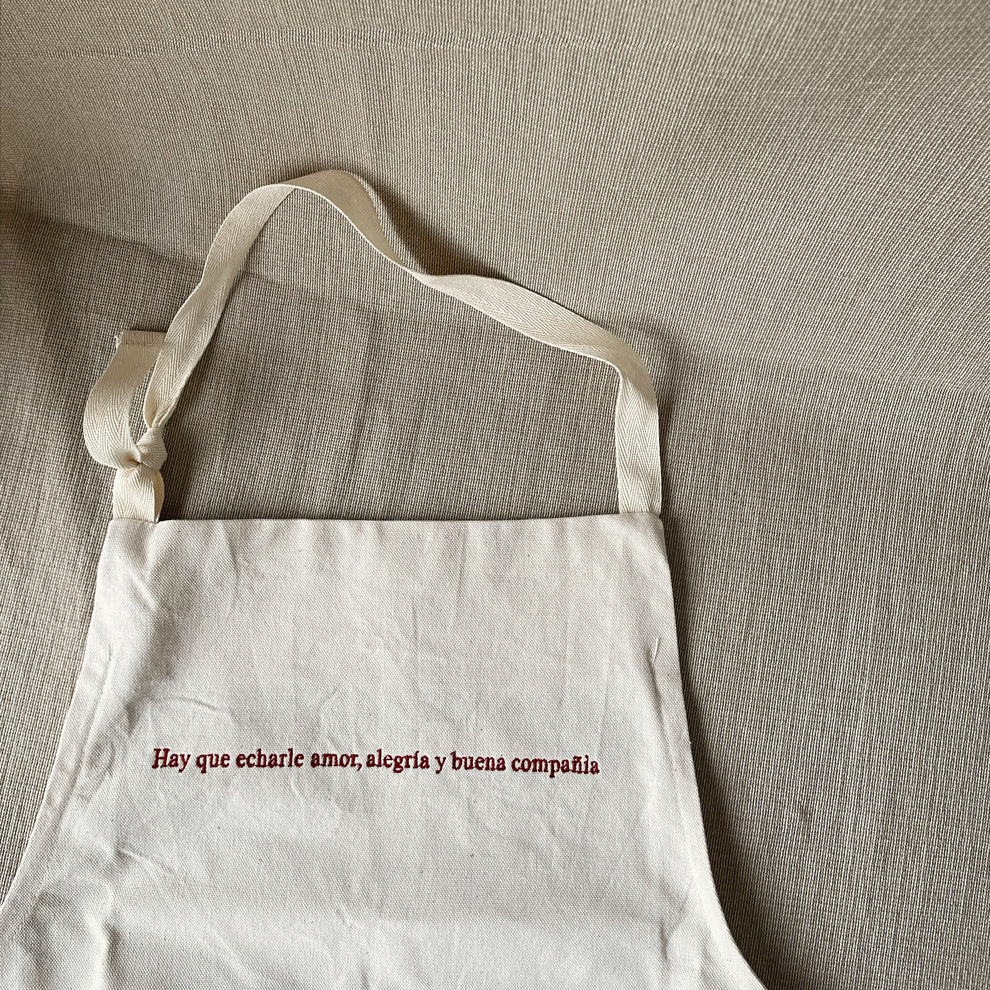 Hecho a mano. Con las palabras "Hay que echarle amor, alegría y buena compañía"