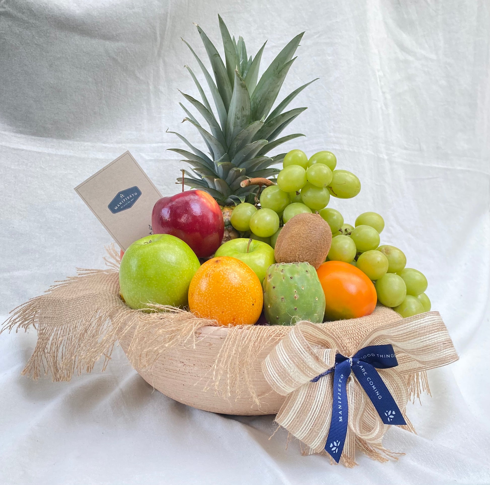 Una selección de frutas de temporada, elegidas de temporada para lograr frescura y variedad. Perfecta para regalar en cumpleaños, condolencias o deseos de pronta recuperación, transmitiendo cariño a través de un gesto sencillo y especial. En cocas artesanales de El Carmen de Viboral